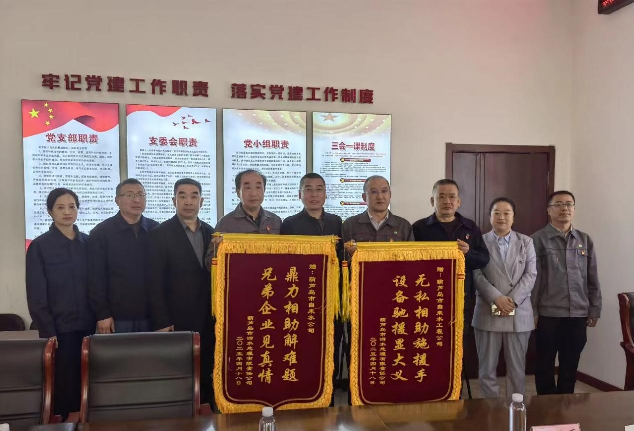 市污水處理有限公司向自來水公司贈(zèng)送錦旗