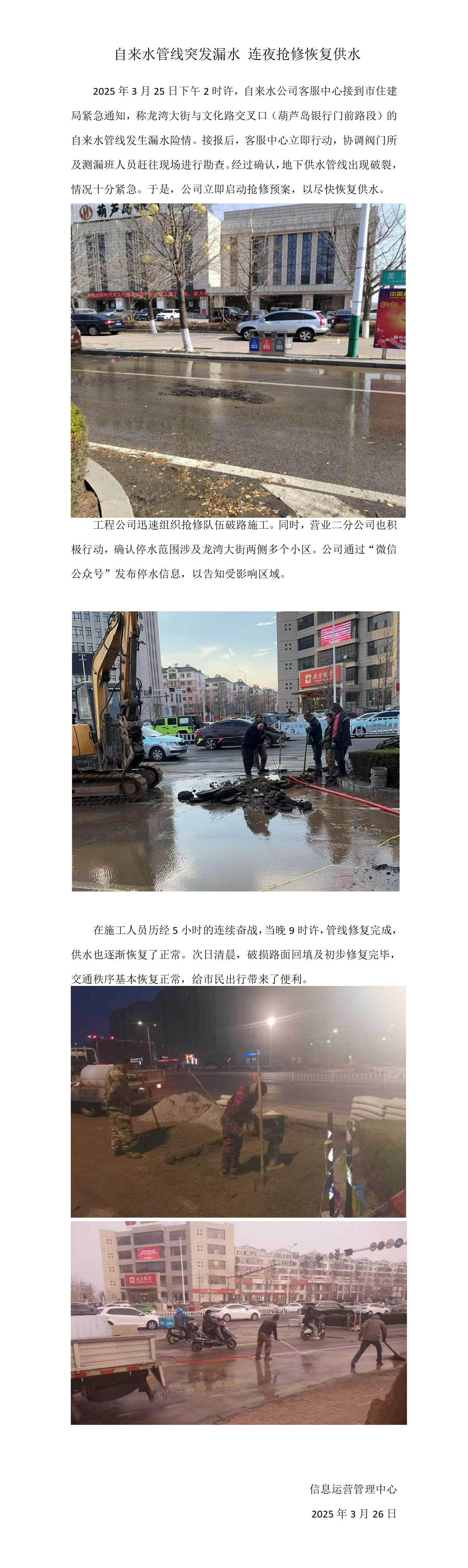 自來水管線突發(fā)漏水 連夜搶修恢復(fù)供水