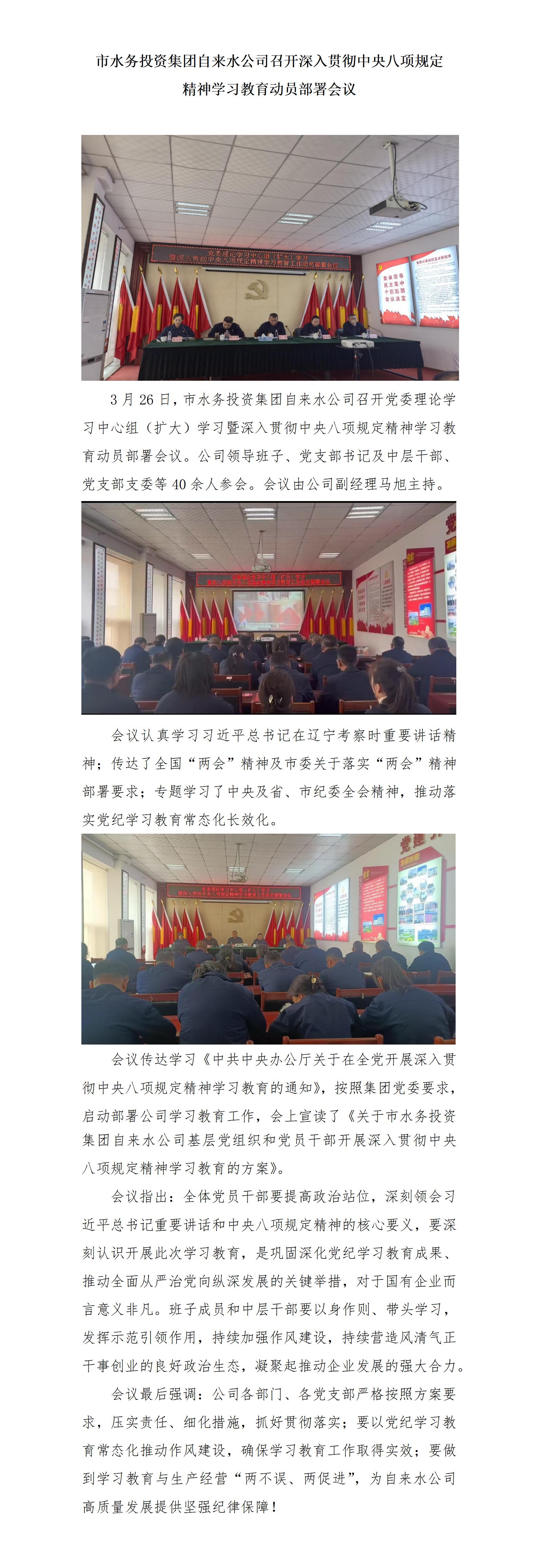 市水務(wù)投資集團(tuán)自來水公司召開深入貫徹中央八項(xiàng)規(guī)定 精神學(xué)習(xí)教育動(dòng)員部署會(huì)議