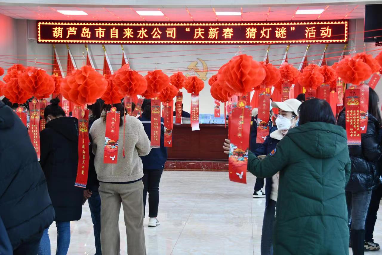 為豐富職工的文化生活,弘揚(yáng)傳統(tǒng)文化,增強(qiáng)企業(yè)凝聚力,營(yíng)造良好的企業(yè)文化氛圍,公司黨委聯(lián)合工會(huì)開展“慶新春 猜燈謎”活動(dòng)。            2月10日下午14時(shí),公司近百名職工齊聚大會(huì)議室,本次活動(dòng)還特別邀請(qǐng)了中機(jī)(葫蘆島)青山水務(wù)環(huán)境投資有限公司干部職工共同參與,由工會(huì)閆主席和安副主席親自帶隊(duì)?;顒?dòng)現(xiàn)場(chǎng)被精心準(zhǔn)備的紅燈籠、燈謎條等裝飾的分外喜慶,節(jié)日氛圍十足。本次活動(dòng)設(shè)150余條燈謎,內(nèi)容涵蓋成語、字謎、文具、植物、水產(chǎn)、樂器和鮮花等多方面內(nèi)容,集知識(shí)性與娛樂性于一體,以寓教于樂的形式傳承傳統(tǒng)文化。參賽職工暢游在百條燈謎中,有的獨(dú)自研究,有的和身邊同事共同討論,紛紛沉浸在猜謎的樂趣中,整個(gè)活動(dòng)現(xiàn)場(chǎng)一片歡聲笑語。          通過開展此次“慶新春 猜燈謎”活動(dòng),不僅提升了職工幸福感,加強(qiáng)團(tuán)隊(duì)凝聚力,更是展現(xiàn)了職工群眾的聰明才智和對(duì)美好生活的向往,最后,大家紛紛表示,要以更加飽滿的熱情為公司的發(fā)展貢獻(xiàn)自己的一份力量。