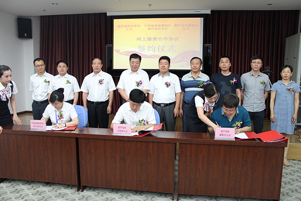 ——公司與郵儲(chǔ)銀行葫蘆島分行簽訂“網(wǎng)上代收水費(fèi)”合作協(xié)議     為進(jìn)一步拓寬繳費(fèi)渠道,為用戶提供更加便利的繳費(fèi)途徑,6月11日,公司與郵儲(chǔ)銀行葫蘆島分行及遼寧省郵政公司葫蘆島市分公司線上繳費(fèi)合作協(xié)議簽約儀式在市郵儲(chǔ)銀行二樓會(huì)議室隆重舉行。公司經(jīng)理李文生、常務(wù)副經(jīng)理徐學(xué)良、副經(jīng)理孫海玉、副經(jīng)理馬旭,郵儲(chǔ)銀行葫蘆島分行行長(zhǎng)楊星君、黨委書記王樹貴及相關(guān)部門負(fù)責(zé)人出席簽約儀式。     簽約儀式上,公司經(jīng)理李文生,郵儲(chǔ)銀行葫蘆島分行行長(zhǎng)楊星君先后致辭,公司副經(jīng)理孫海玉、郵儲(chǔ)銀行葫蘆島分行副行長(zhǎng)梁玲分別代表各自單位簽署合作協(xié)議。最后,郵儲(chǔ)銀行工作人員現(xiàn)場(chǎng)演示了繳費(fèi)的操作流程。     此次簽訂“網(wǎng)上代收水費(fèi)”合作協(xié)議,是繼新老城區(qū)建立8個(gè)營(yíng)業(yè)收費(fèi)大廳、與中國(guó)電信葫蘆島分公司合作用其16個(gè)收費(fèi)大廳開展水費(fèi)代繳業(yè)務(wù)之后,公司拓展服務(wù)渠道,提高服務(wù)水平的又一新舉措,充分體現(xiàn)了供水企業(yè)為民利民便民的服務(wù)理念,此舉將為市民繳納水費(fèi)帶來極大方便。     目前,公司網(wǎng)站已于7月1日開通,市民可以上網(wǎng)查詢水費(fèi)繳納情況,隨著網(wǎng)上繳費(fèi)測(cè)試系統(tǒng)的逐步完善,我市居民有望年內(nèi)實(shí)現(xiàn)上網(wǎng)交水費(fèi)。