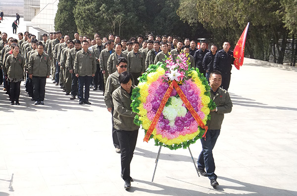 接著進行了敬獻花圈儀式,公司經理李文生及黨員代表張志銘、張鐵明緩緩上前,將緞帶上寫著“革命烈士永垂不朽”的花圈敬獻到革命烈士紀念碑前。隨后,全場肅立,向為民族獨立、國家富強、人民幸福英勇獻身的烈士們三鞠躬,寄托對革命先烈深深的緬懷和敬仰之情。