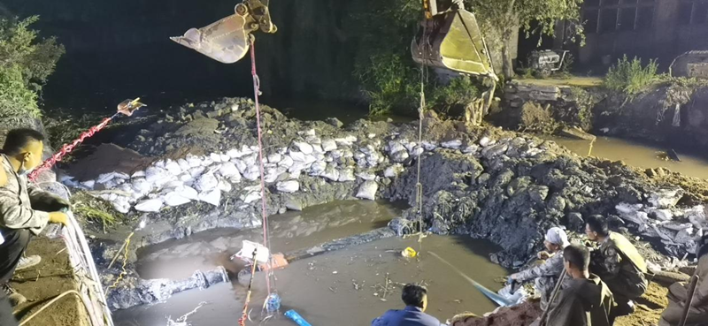由于管道破裂處位于直徑約10米的淤泥水坑中,地勢環(huán)境非常惡劣,給搶修工作帶來了極大的難度。維修人員首先對施工地點進行圍堰、降水。為防止污水倒灌進入管線,工作人員一邊用四臺大功率水泵同時抽出圍堰內(nèi)的水,一邊控制管線泄水壓力。由于管線大,水量多,經(jīng)過4個小時的連續(xù)降水作業(yè),管線斷裂點才逐漸顯露出來,工作人員立即對破裂部位進行更換。夜晚涼意不斷,坑內(nèi)泥濘不堪,維修人員忍著腥臭的淤泥,不顧蚊蟲叮咬,埋頭苦干,與時間賽跑,他們不怕臟不怕累,全力以赴按下?lián)屝薜摹翱爝M鍵”,跑出了“加速度”,經(jīng)過全體維修人員的連夜奮戰(zhàn),于當晚23時搶修結(jié)束,23:30恢復供水,當晚經(jīng)對西山坡6號泵房取水樣化驗水質(zhì)完全達標。