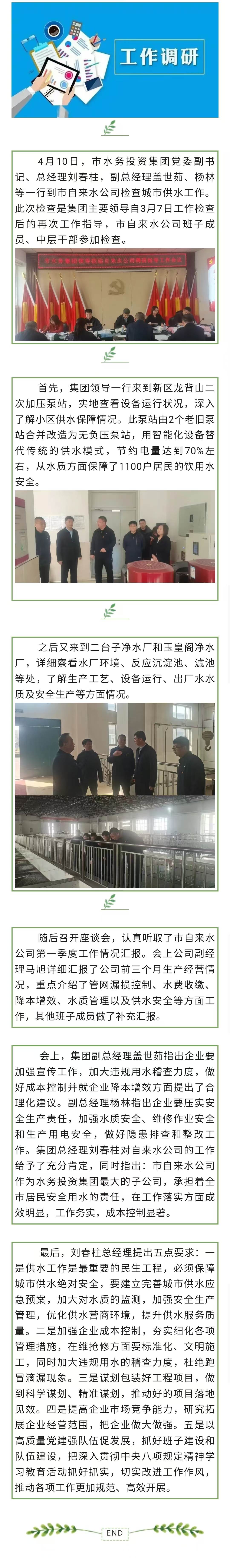 市水務投資集團主要領導到市自來水公司檢查城市供水工作