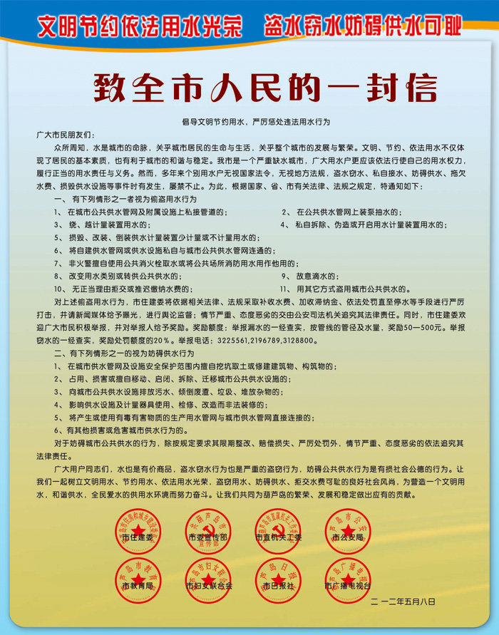 文明節(jié)約依法用水光榮 盜水竊水妨礙供水可恥