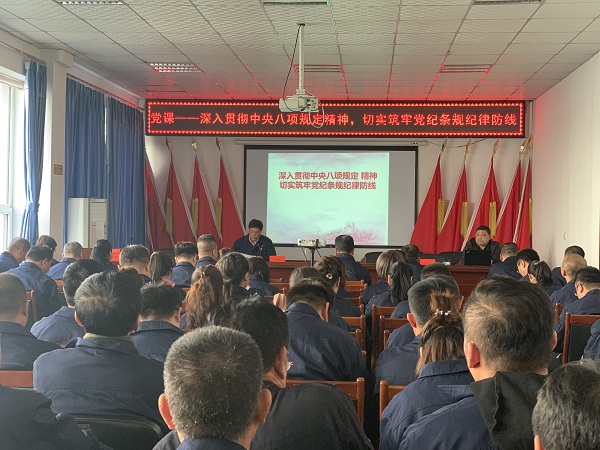 為深入開展“不忘初心、牢記使命”主題教育,進一步推進黨風廉政建設深入開展,貫徹落實中央八項規(guī)定精神,根據(jù)公司黨委關于開展“不忘初心、牢記使命”主題教育安排,10月23日下午,公司黨委特邀市委第三巡察組組長梁志遠為全體黨員干部上了一堂題為《深入貫徹中央八項規(guī)定精神,切實筑牢黨紀條規(guī)紀律防線》的專題黨課。公司黨委書記張旭濱主持會議,公司基層副職以上干部和全體黨員100余人參加了學習。