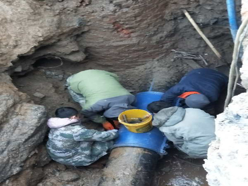經(jīng)現(xiàn)場(chǎng)查看,確定為DE400管線爆裂。維修人員首先關(guān)閉了管線閥門,公司經(jīng)理李文生連夜組織召開現(xiàn)場(chǎng)會(huì)議,研究制定搶修方案。共計(jì)40余人參加了搶修,出動(dòng)大、小搶修車輛15輛,并撒鹽3噸防止路面濕滑。