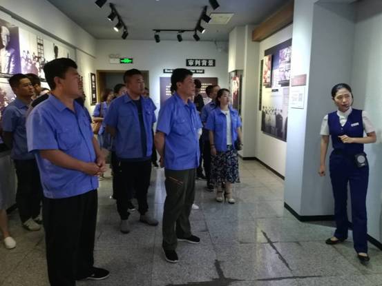 活動的第一站是沈陽審判日本戰(zhàn)犯特別軍事法庭舊址。據(jù)講解員介紹,它是新中國在1956年審判日本戰(zhàn)犯的法庭遺址。陳列展覽包括文字、照片、史料,文物、多媒體演示等展覽形式。展覽共分為“審判背景” “審判準(zhǔn)備”“莊嚴(yán)審判”“尾聲”等四個(gè)部分,全面展示了日本戰(zhàn)犯在沈陽接受審判的整個(gè)過程,重現(xiàn)了1956年中國政府成立特別軍事法庭,對日陸軍中將師團(tuán)長鈴木啟久、偽滿洲國國務(wù)院總務(wù)長官武部六藏等36名戰(zhàn)犯進(jìn)行審判的歷史場景。黨員們在現(xiàn)場莊嚴(yán)地舉起右拳,面對黨旗宣誓,重溫入黨誓詞,一起回顧入黨初心。宣誓結(jié)束后,隨同講解員參觀了各個(gè)展廳及復(fù)原的公審日本戰(zhàn)犯場景蠟像,觀看了公審日本戰(zhàn)犯的影像紀(jì)錄片,這場令中國人民揚(yáng)眉吐氣的審判,讓大家深刻感受到了中國對待日本戰(zhàn)犯的寬大胸懷,對祖國的敬佩之心油然而生。