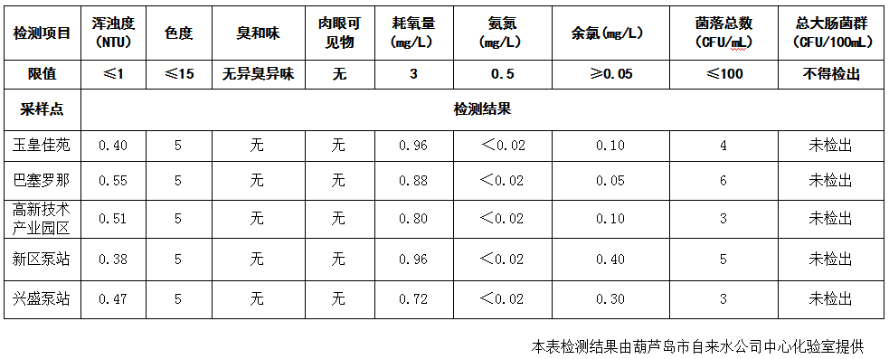 2017年12月6日葫蘆島市城市供水管網(wǎng)水質(zhì)信息