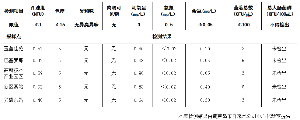 2017年11月29日葫蘆島市城市供水管網(wǎng)水質(zhì)信息