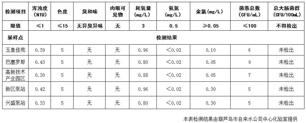 2017年8月3日葫蘆島市城市供水管網水質信息